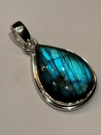 Flott Labradoritt i 925 sølv, str. 26x11mm