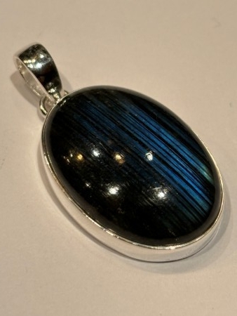 Flott stor Labradoritt i 925 sølv, str.35x18mm